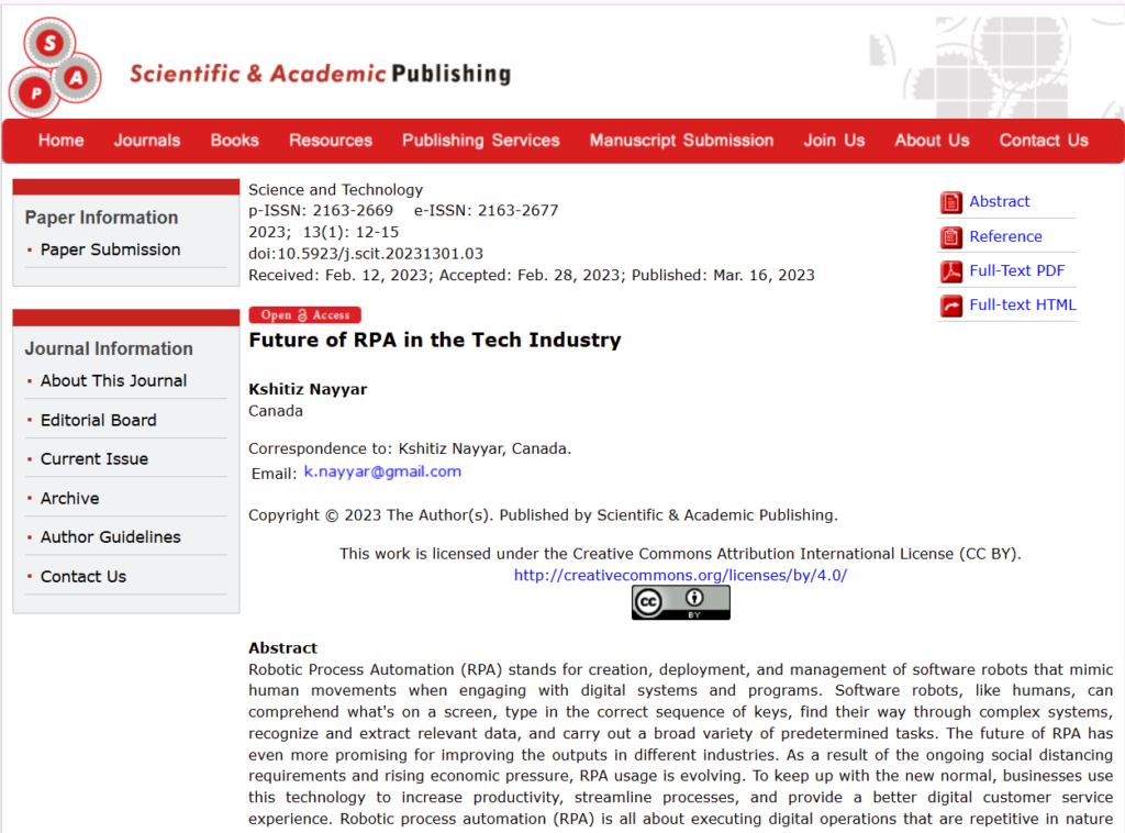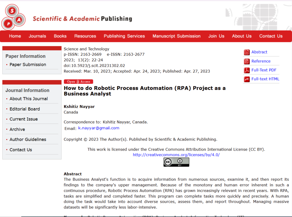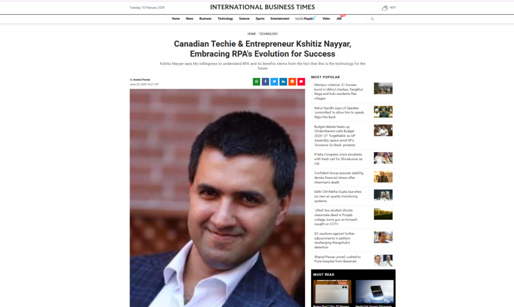 Now based in Toronto, Canada, Kshitiz is the Founder and Director of KNAYYAR INC., a digital and automation consulting firm helping organizations modernize operations, accelerate delivery, and build future-ready products through RPA, AI-driven workflows, and product-led transformation.