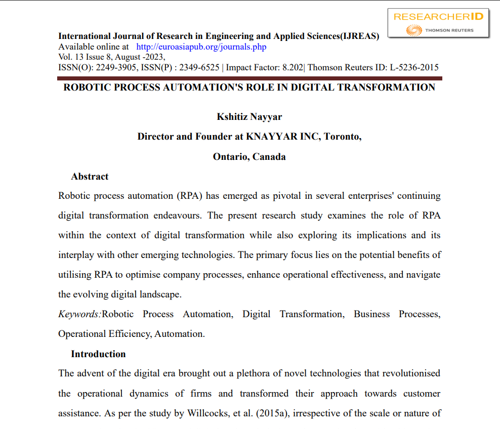💡 2 x Top Voice on LinkedIn 💡 | RPA Practitioner | IT Consultant | Director & Founder at KNAYYAR INC. | Published Books 📕 & Articles Author | Mentor | Ex-Accenture | Featured in TechBullion, New York Weekly & IBTimes India